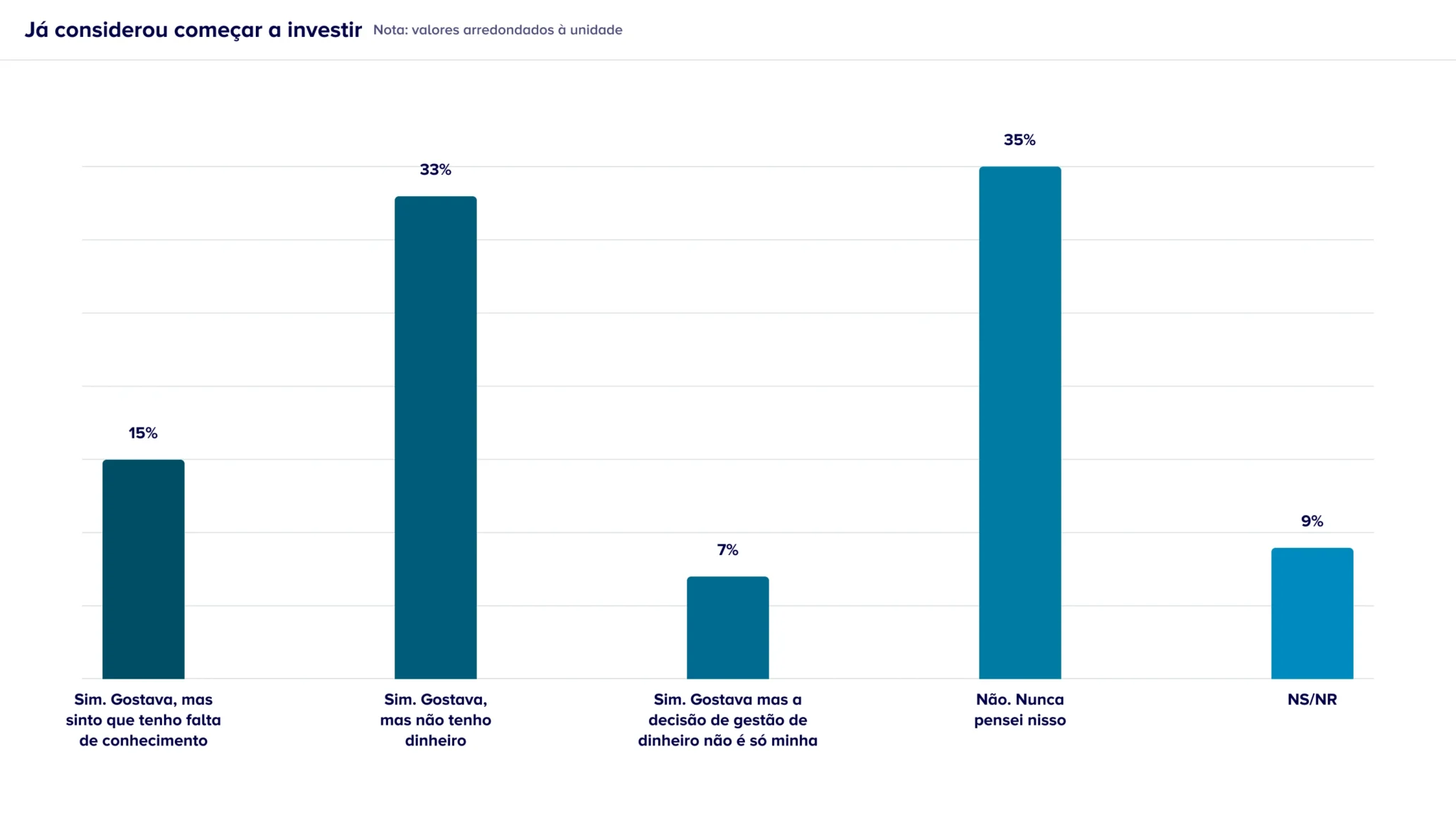 A falta de dinheiro ou conhecimento são as justificações de quase metade (48%) daqueles que não investem.
