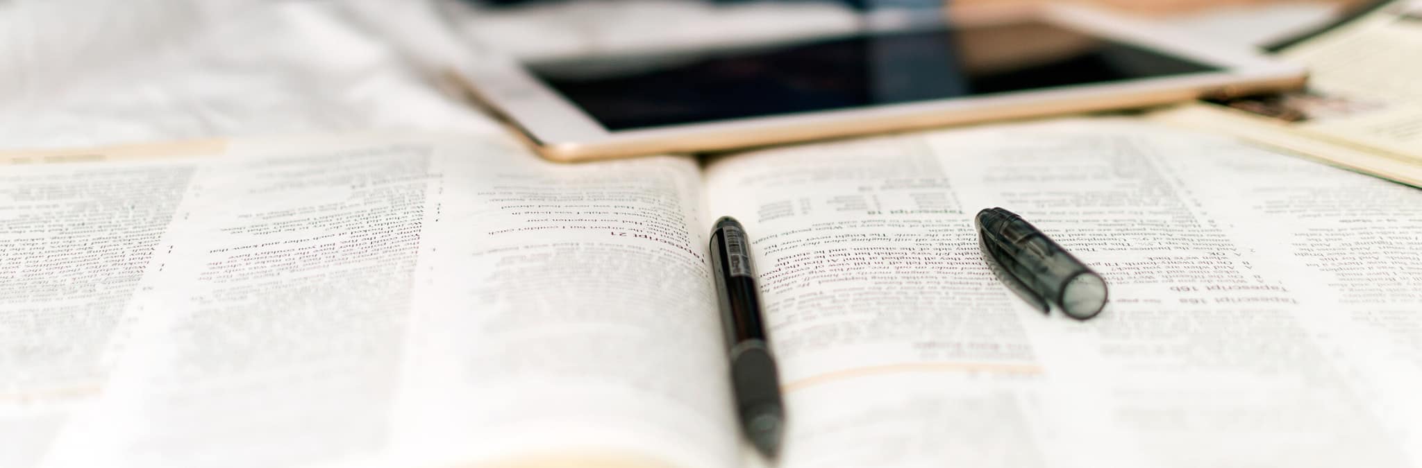 canetas livro e tablet