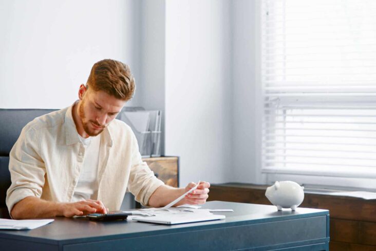homem a fazer contas à diferença de rendimentos do primeiro para o segundo semestre em 2023