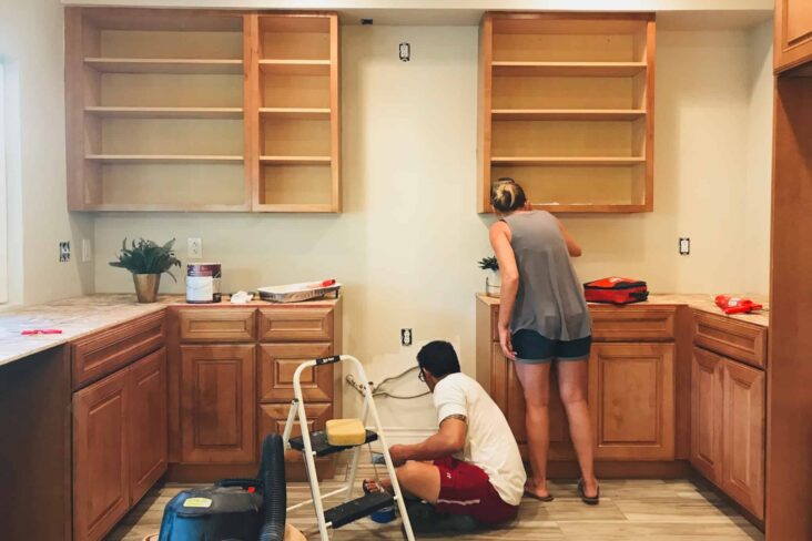 Imagem de uma mulher e duas crianças a pintar uma parede