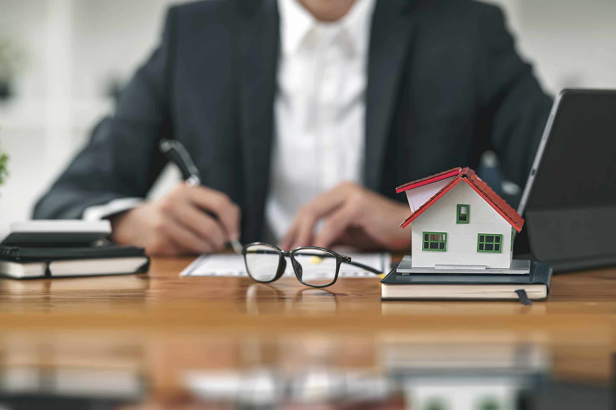 trabalhador do banco a analisar a possibilidade dos fiadores para um crédito habitação serem removidos do contrato