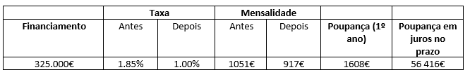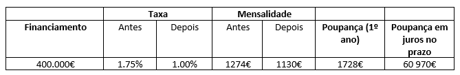 Caso do Bruno: poupou 1.728€/ano transferindo o seu crédito de 400.000€