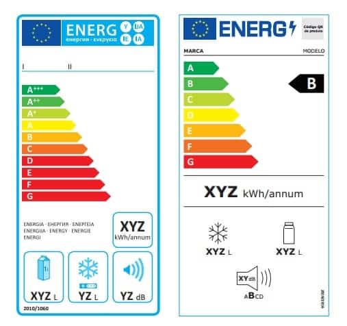 No caso das antigas etiquetas, existiam 10 classes energéticas: A+++, A++, A+ e de A a G. Já as novas etiquetas energéticas têm um menor número de classes, variando apenas entre a classe A e a classe G (sete classes possíveis). Assim, a União Europeia optou por esta alteração pois, com a melhoria da eficiência energética dos equipamentos, existia uma grande concentração de produtos nas categorias superiores. Ou seja, nas categorias de maior eficiência.