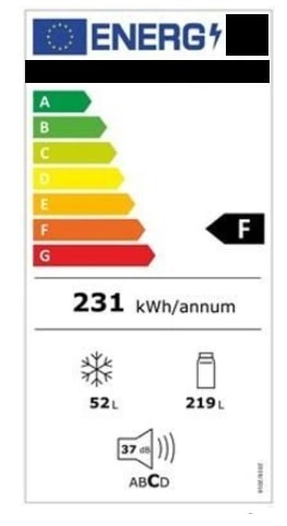 No canto inferior direito da nova etiqueta energética, consta o Regulamento Europeu que estabelece o regime da etiquetagem energética para o equipamento que tenciona adquirir. No exemplo acima referente ao frigorífico, pode constatar que, na posição indicada, consta a referência 2019/2016 que, por sua vez, corresponde ao Regulamento (UE) 2019/016. Em rigor, é uma etiqueta aplicável a um “aparelho de refrigeração alimentado pela rede elétrica, com volume superior a 10 litros e inferior ou igual a 1500 litros”.