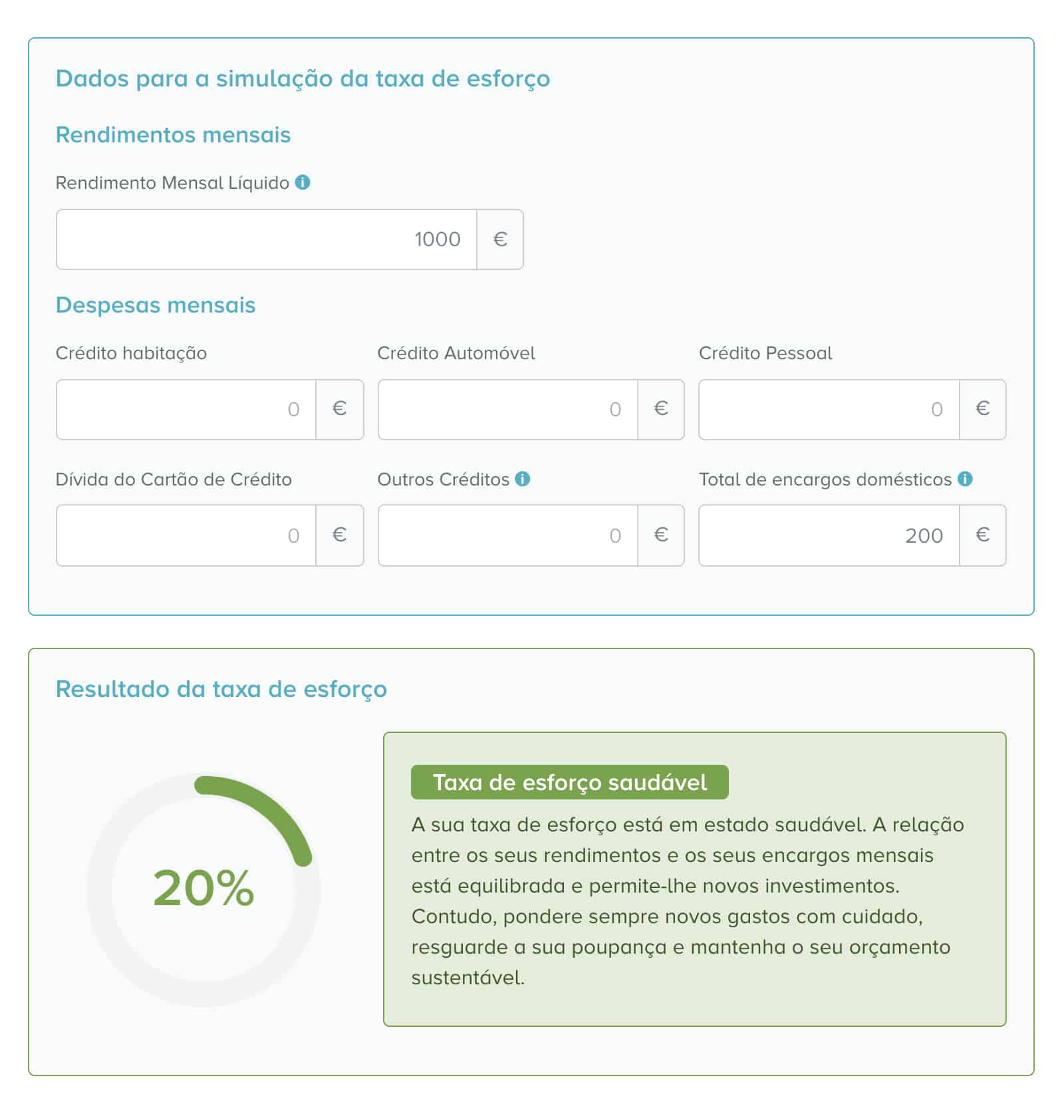 O simulador vai indicar qual a taxa de esforço da sua família, avaliando o seu “estado de saúde”.
