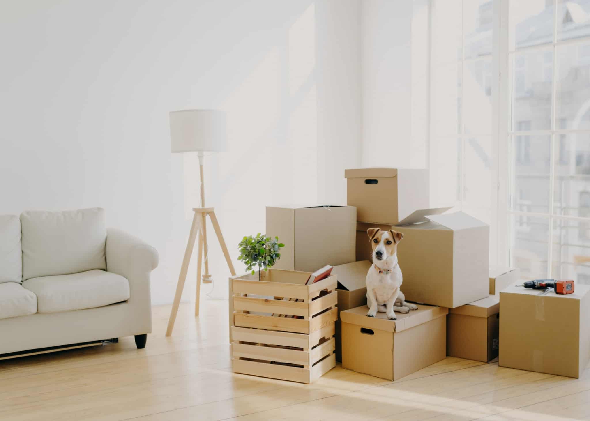 Imagem de uma sala onde se pode ver caixas - comprar casa - mudanças - sair de casa