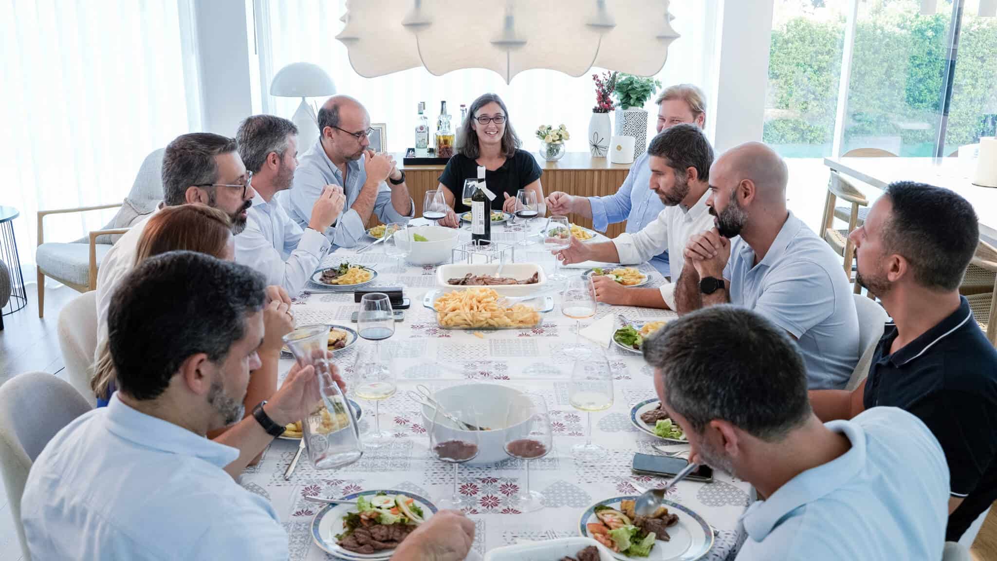 À mesa, num ambiente descontraído, Rui Bairrada, Chief Executive Officer (CEO), Hugo Rosa Ferreira, Chief Strategy Officer (CSO), Irene Vieira Rua, Chief People Officer (CPO), Cláudio Santos, Chief Commercial Officer (CCO), Nuno Leal, Chief Investment Officer (CIO), Paulo Velho Cabral, Chief Financial Officer (CFO), Sérgio Cardoso, Chief Academic Officer (CAO), Rui Costa, Chief Operations Officer (COO), João Saleiro, Chief Tecnnology Officer (CTO) e Ricardo Santos, Chief Brand Officer (CBO) partilharam as suas histórias com a moderação de Sara Antunes, diretora de Comunicação e Conteúdos do Doutor Finanças.