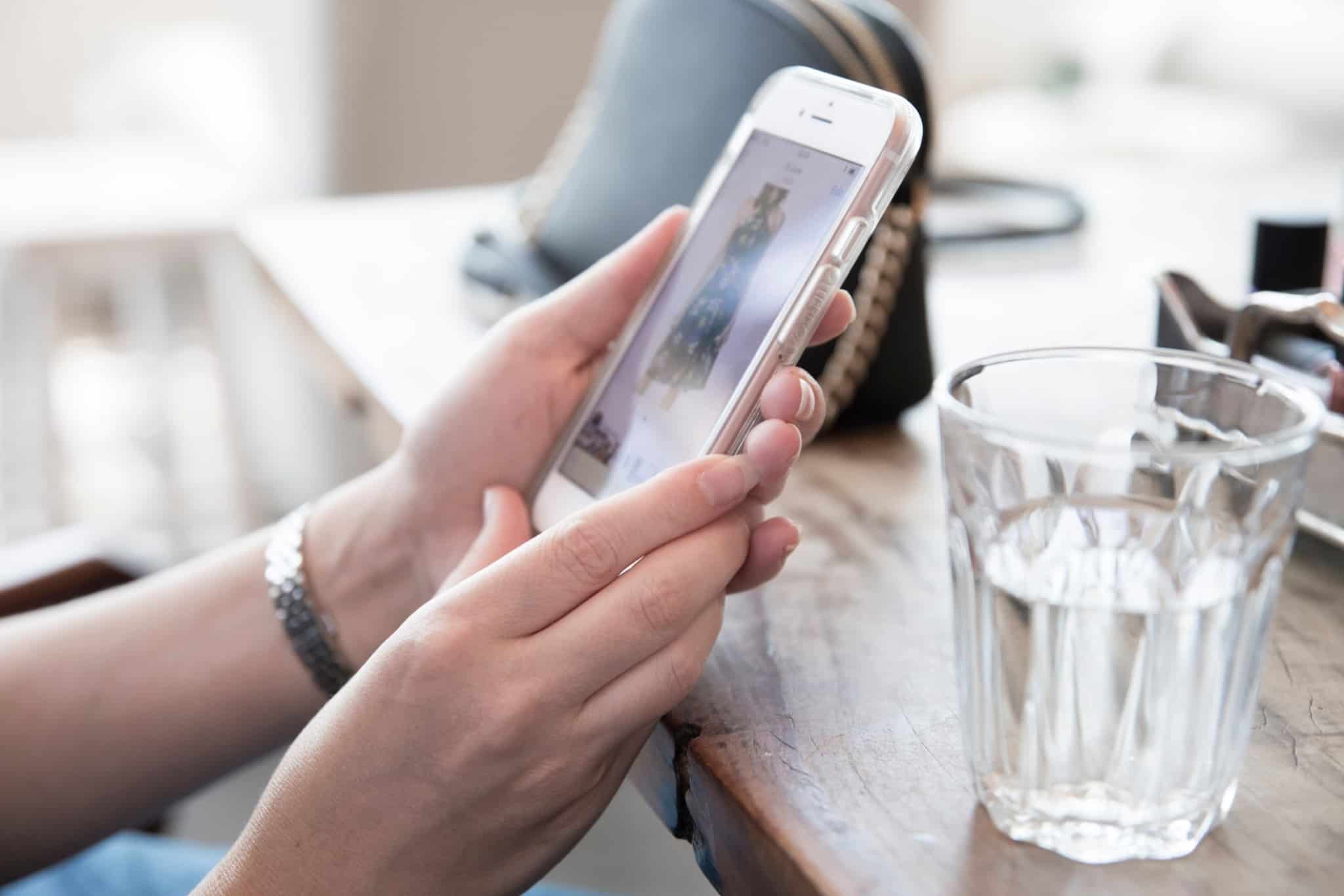 Imagem de uma mulher a fazer compras no smartphone - compras por impulso