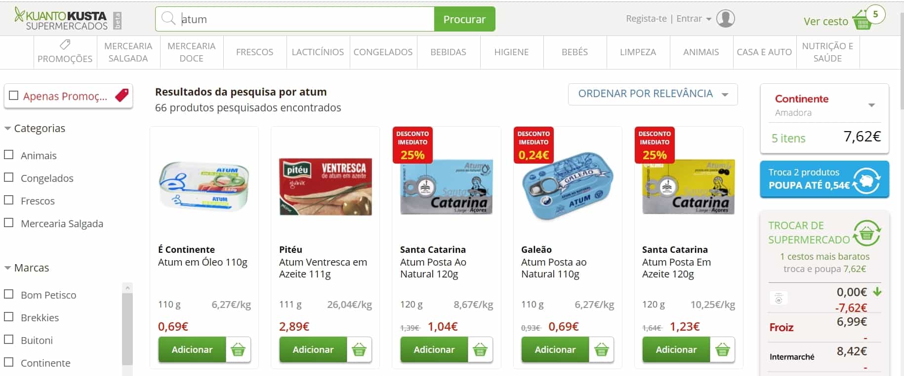 Um simples exercício pode ser feito na plataforma KuantoKusta Supermercados. Escolha o supermercado da zona e comece a adicionar os produtos que normalmente compra. A plataforma pode sugerir trocar por um produto mais barato e começa logo a poupar alguns cêntimos. É uma forma também de fazer uma lista de compras e saber um valor aproximado da mesma.