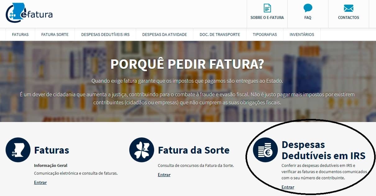 O segundo passo é entrar no portal do e-fatura e aceder às “Despesas dedutíveis em IRS”.