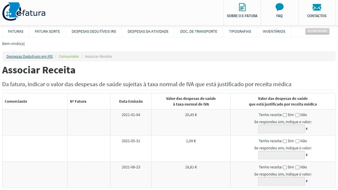 Além da notificação das faturas pendentes, pode ainda aparecer-lhe a notificação de associar receitas às despesas de saúde. Isto é, se nalguma das despesas que aparecer tiver uma receita da mesma, deve assinalar “Sim” à pergunta “Tenho receita” e indicar de seguida o valor relativo à despesa médica que se encontra na fatura.