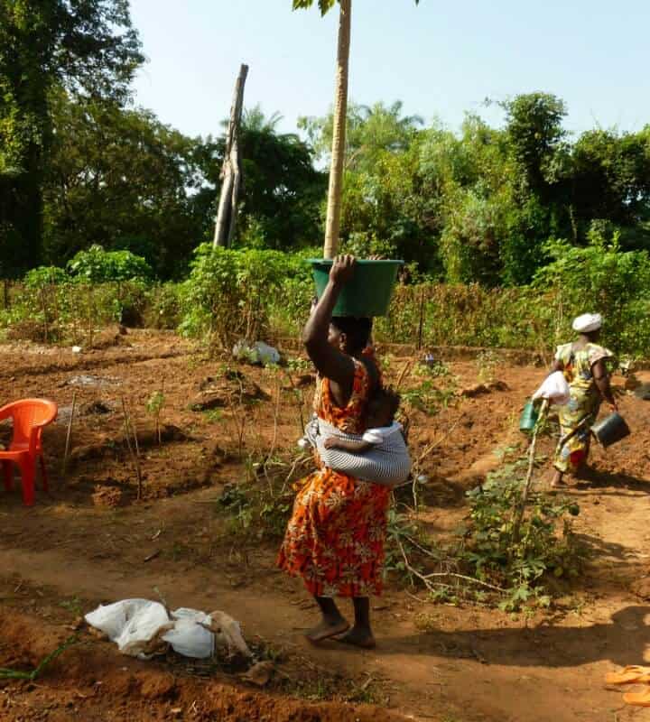 Dias depois estávamos já com a mão na terra, a ajudar as camponesas na horta comunitária. Este projecto sai do corpo de um grupo de mulheres que pouco ou nada falam de português, nem nós do seu dialecto, verdadeiras forças da natureza pois passam os seus dias a fazer trabalho pesado de campo, seja com bebés às costas ou já sem a certeza da idade que carregam. Com elas aprendemos a transplantar, a tirar água do poço e a carregá-la na cabeça. É bem verdade que quando o coração tem vontade de fazer nem a língua é uma barreira!