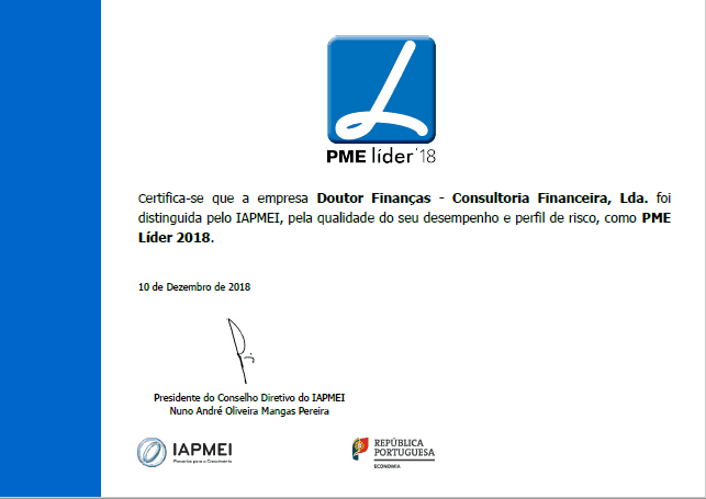 O Doutor Finanças recebeu hoje o Estatuto PME Líder 2018.