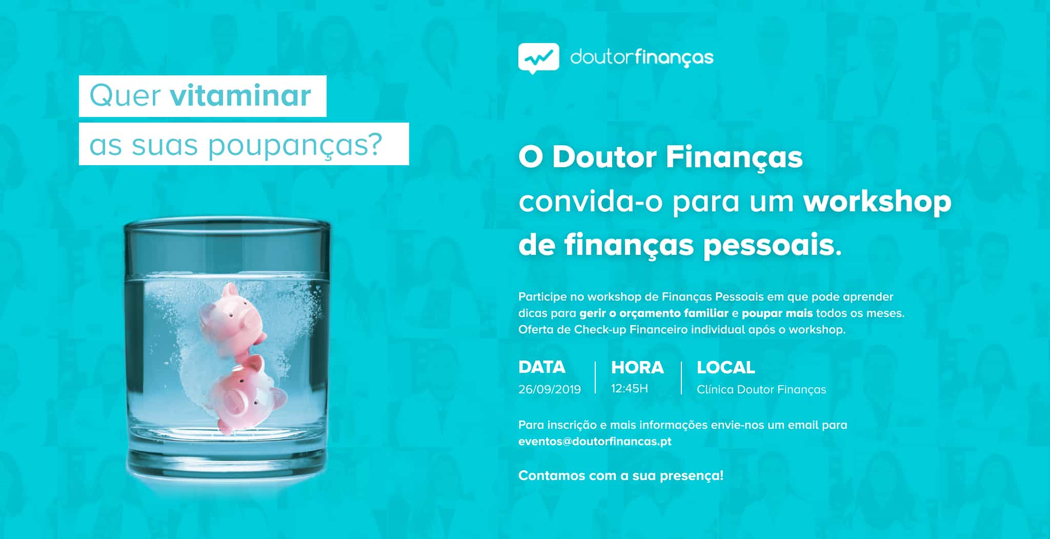 O Doutor Finanças convida-o a participar no workshop de finanças pessoais na sua Clínica de Lisboa, no dia 26 de setembro às 12h45.