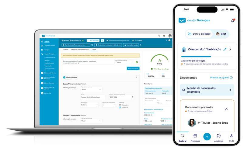 A Área Pessoal está ligada a tudo o que se passa na Clínica, o centro de trabalho diário dos nossos doutores. Esta plataforma multifuncional organiza documentos, facilita a comunicação com clientes e parceiros, e automatiza processos cruciais, como o cálculo do scoring de crédito ou a negociação em tempo real. O que começou como uma solução interna tornou-se numa referência para o setor, sendo hoje utilizada por centenas de intermediários de crédito na Rede Doutor Finanças.