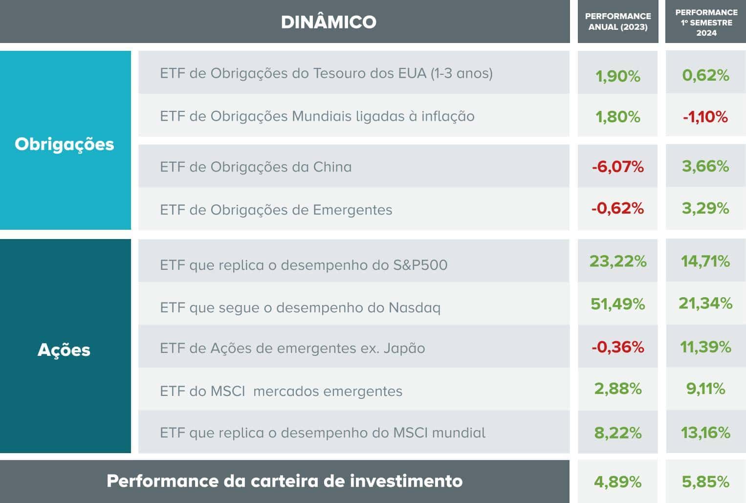 Desempenho da carteira com perfil dinâmico