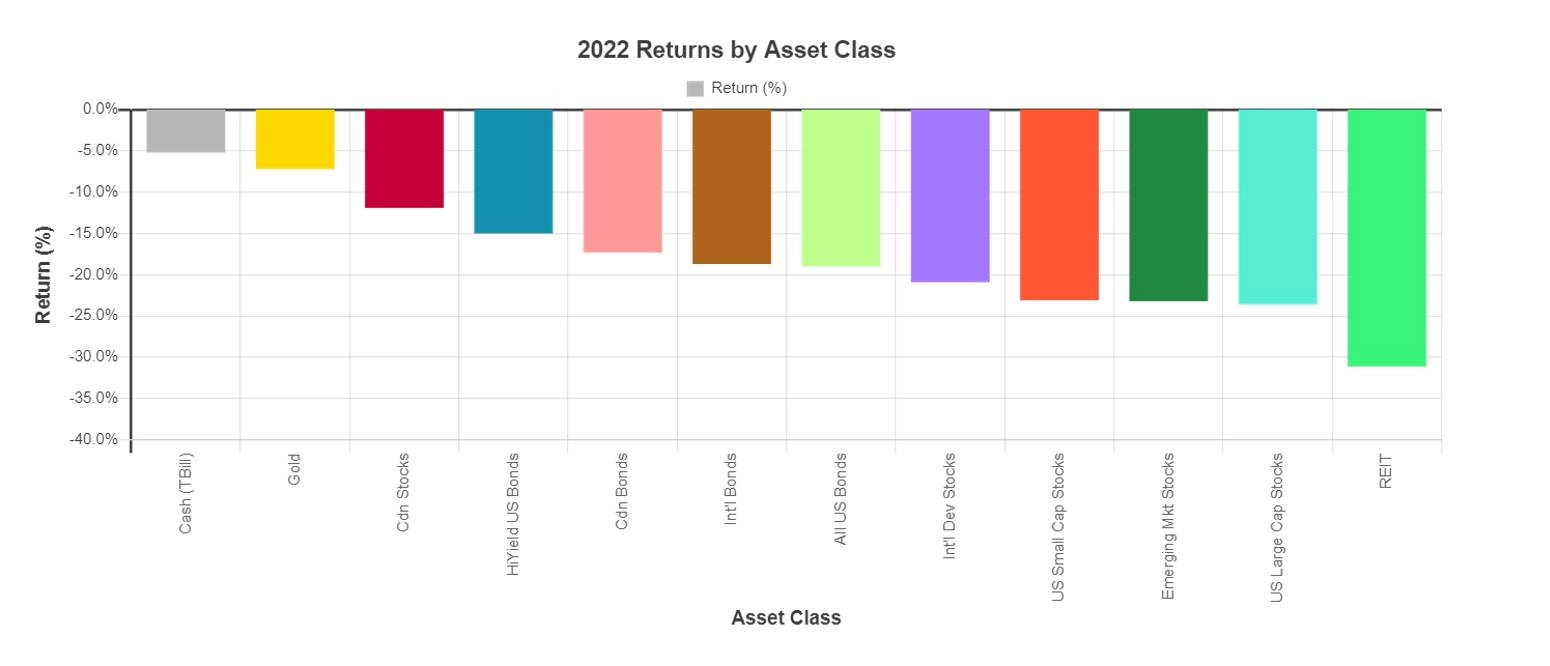 Segundo informação retirada do site The Measure of a Plan, o investimento em REIT’s ao longo de 2022 resultou numa desvalorização do capital investido de 31%. Comparando com outras classes de ativos, foi a que mais desvalorizou durante todo o ano que passou.