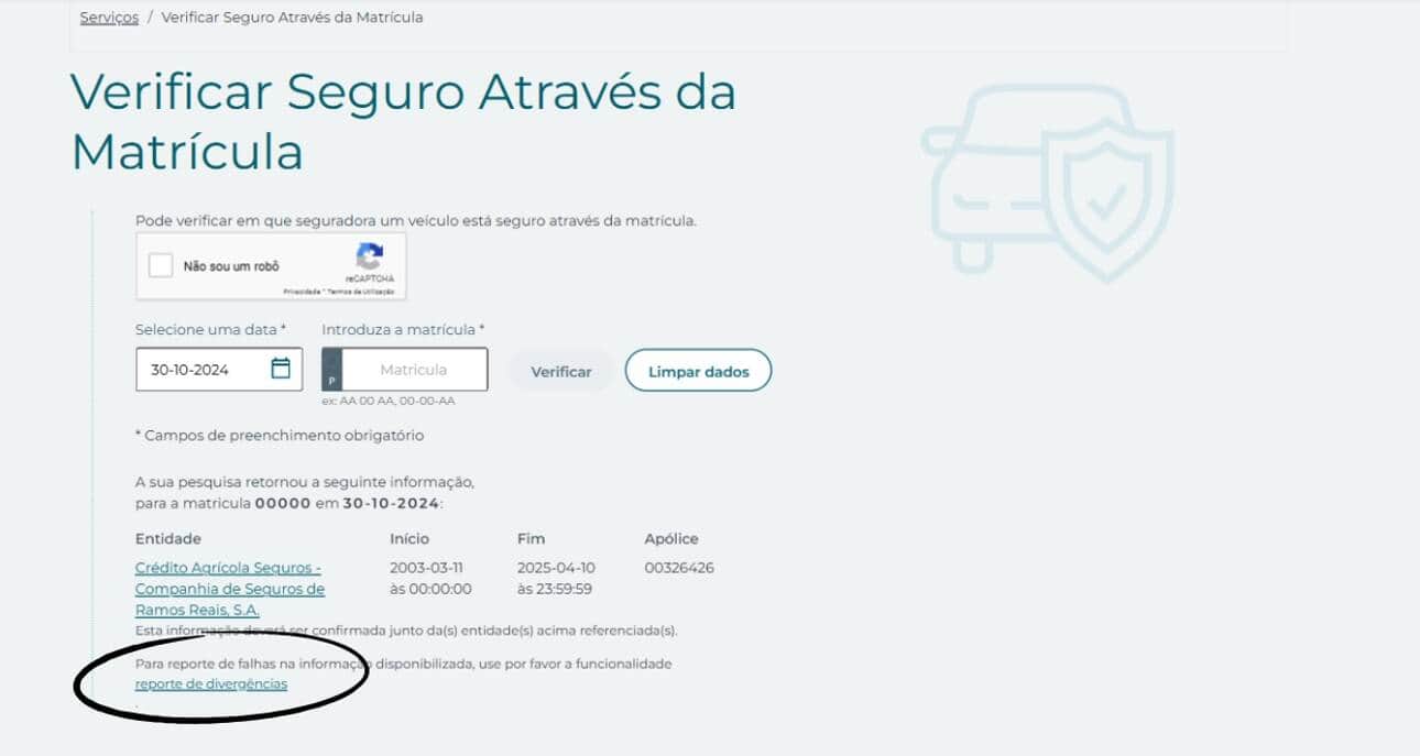 Saber o seguro pela matrícula na app “Tem Seguro?”