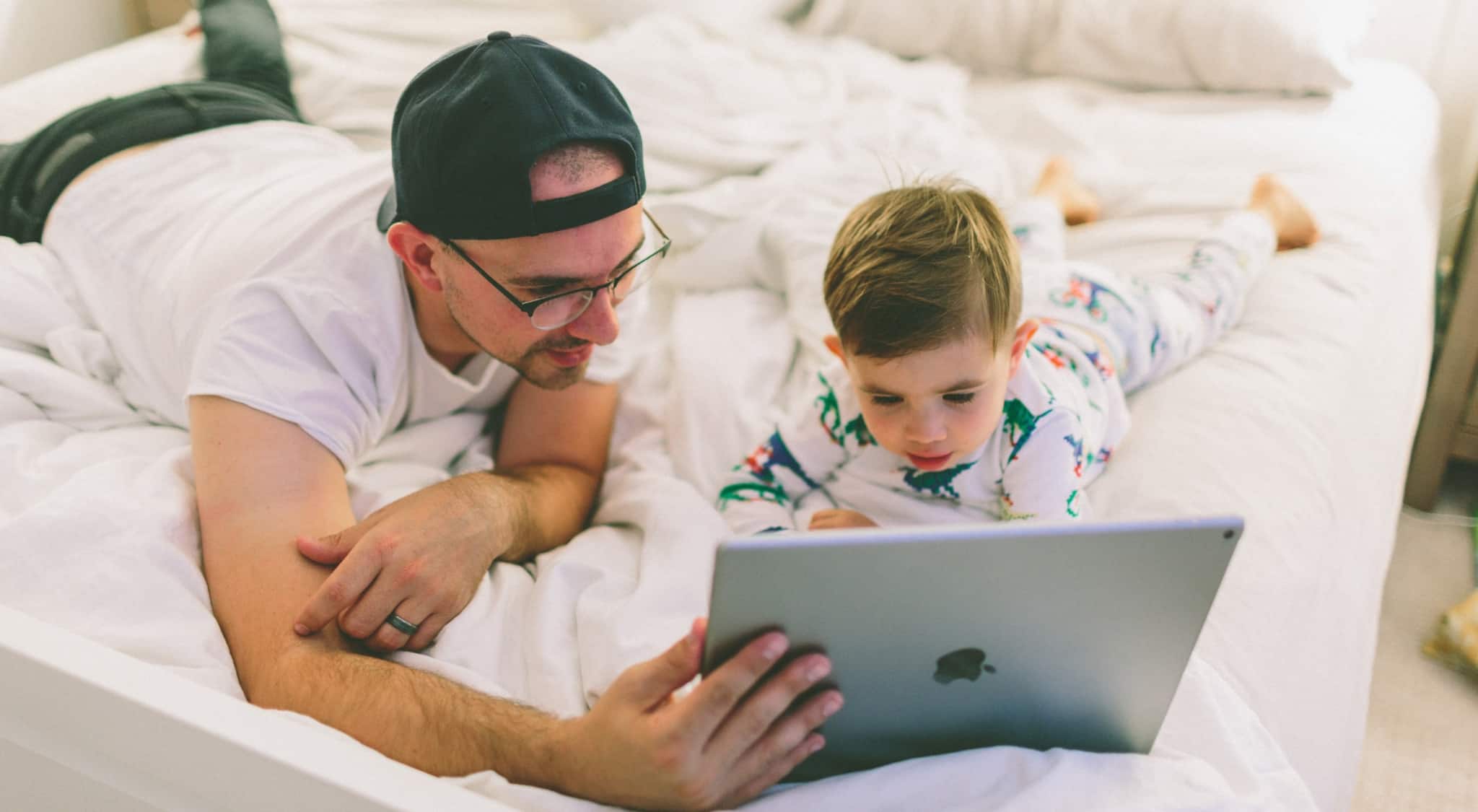 Pai e filho no tablet