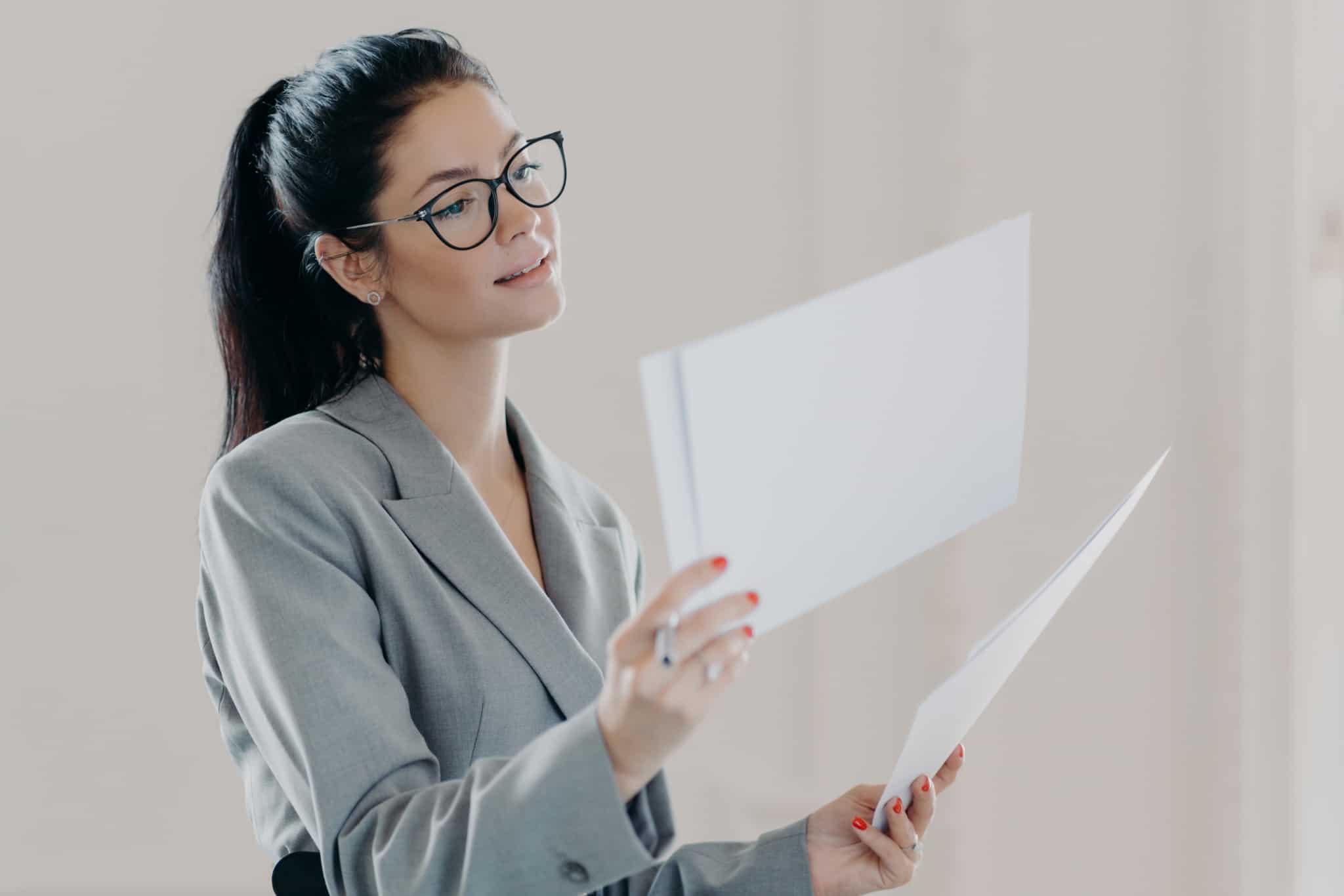 Mulher com a segurar alguns papeis depois de autenticar documentos